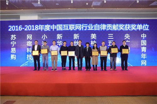会上,中国互联网协会向阿里巴巴等27家互联网企业颁发了“2016-2018年度中国互联网行业自律贡献奖”,以表彰相关单位在开展行业自律、推动我国互联网行业文明健康发展中所做出的努力和贡献,希望获奖单位发扬成绩,再接再厉。同时也鼓励并号召更多的互联网从业单位不断增强责任意识,主动加强行业自律,积极为维护良好网络发展环境、共建共享清朗网络空间贡献更大力量。